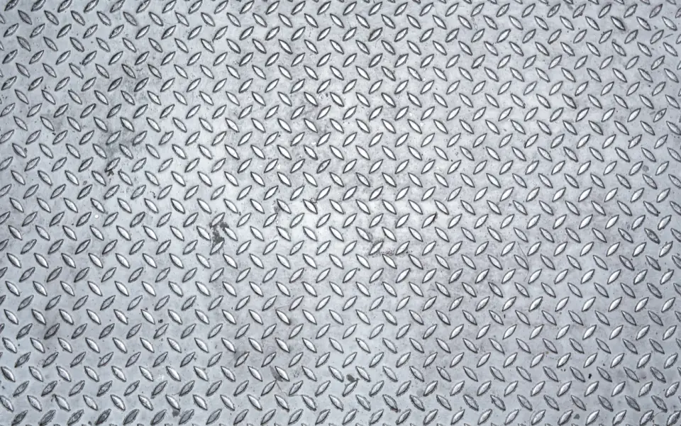 Lámina antiderrapante de acero al carbono laminada en caliente, con relieve tipo diamante (chequer plate) o semilla (tear‑drop) que incrementa el coeficiente de fricción y reduce el riesgo de resbalones en áreas industriales y de transporte.